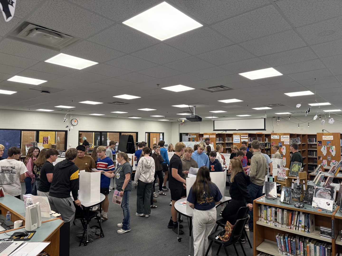 Students working on research projects in English, Driver's Education, and Health classes